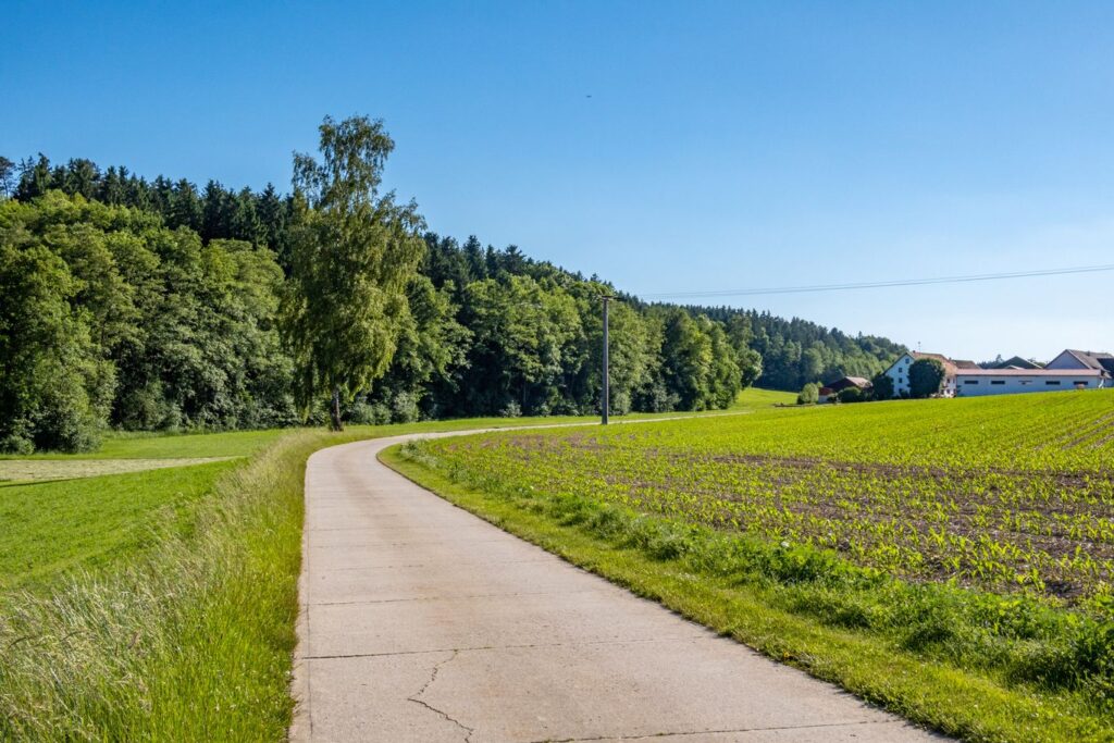 Von Furth nach Edelmannsberg und über einen Schlenker auf die Schotterpiste (Waldautobahn) den Bucher Graben entlang. In Eugenbach über St. Georg mit herrlichem Blick nach Altdorf und via Radweg Altdorf – Furth zurück.