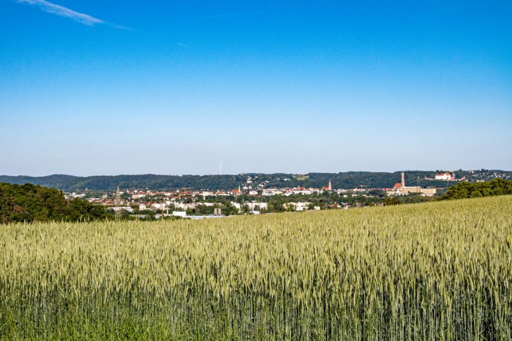 Wir starten unsere Tour im Further Dorfzentrum. Kurz Richtung Mainburg biegen wir nach der Ampel links ab Richtung Edelmannsberg. Wir nehmen den steil ansteigenden Radweg bis Edelmannsberg und bleiben oben angekommen der Fahrtrichtung treu durch das Dorf hindurch. Nach den letzten Edelmannsberger Häusern beginnt beim Buswendeplatz der neue Radweg. Wir genießen die kurze Abfahrt. Am Ende des immer noch abfallenden Radwegs biegen wir nach rechts ein Richtung Unter- und Oberpisat.  Eine Betonplattenstraße bringt uns gut an Unterpisat und Berghaus vorbei und mitten durch den Hof in Oberpisat hindurch. Die frei laufenden Hofhunde waren uns gegenüber sehr friedlich ;-). Die Straße führt weiter an Kollmann vorbei. Kurz nachdem wir linkerhand an ein paar Bäumen vorbeigefahren sind, biegen wir nach links in einen langgezogenen, geraden und ansteigenden Schotterweg ein, welcher uns letztendlich auf die Verbindungsstraße zwischen Edelmannsberg und Attenhausen bringt. Diese Straße überqueren wir indem wir nach rechts auf sie einbiegen und wenige Meter später bereits wieder nach links abbiegen (Richtung Reichersdorf). Wir genießen die langgezogene Abfahrt vorbei an Buch und biegen dann die zweite Möglichkeit nach links Richtung Solomann ab. Dort ist der Einstieg in unsere „Waldautobahn“. Vorsicht: Beim letzten Haus sind Hofhunde, die ihre Aufgabe ernst nehmen – also mit Schwung vorbei! Zunächst am Waldrand entlang befahren wir einen gut fahrbahren, bergab führenden Waldweg, der unten am Bucher Graben angekommen in eine frisch angelegte Schotterpiste übergeht. Dieser wunderschön im Naturschutzgebiet gelegenen Strecke folgen wir mehrere Kilometer durch Wald und Wiesen bis zu ihrem Ende. Kurz vor der Autobahnunterführung biegen wir nach links auf eine Ortsverbindungsstraße, unter die Autobahn hindurch und erreichen Eugenbach. In Eugenbach biegen wir die erste links in den Höhenweg ein, welchem wir folgen. (Alternativ noch etwas geradeaus, falls eine Einkehr in die Tafernwirtschaft Schwaiger geplant ist). Wir folgen stets dem Höhenweg bis zum Kirchweg, in welchen wir einbiegen. Von nun an geht es sehr steil bergauf – ohne E-Bike heißt es Schieben. Oben bei St. Georg angekommen biegen wir am Parkplatz nach stark links ab, wieder auf eine Schotterpiste. Dieser folgen wir bis zu einer Kreuzung mit Wegkreuz. Von dort hat man einen herrlichen Blick. Nach hinten zu St. Georg und bei entsprechendem Wetter bis in die Alpen. Rechts blicken wir über Landshut und erkennen die Altstadt, die Martinskirche und die Burg Trausnitz. An der Kreuzung biegen wir dem Blick nach Landshut folgend nach rechts ein. Der erneute Schotterweg führt uns wieder bergab nach Altdorf.