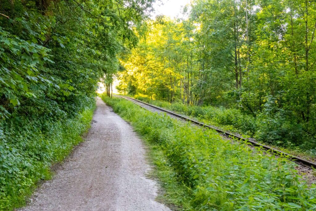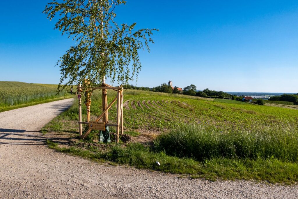 Weiter geht es vom Kreisverkehr aus in die Querstraße, vorbei an der Apotheke. Mitten in der scharfen Rechtskurve biegen wir nach links ab Richtung Ganslberg und folgen der Ganslberger Straße. Von nun an geht es stets gerade aus, Rad- und Schotterstraßen wechseln sich mit Ortsdurchfahrten ab. Es geht durch Ganslberg, dann unter der Autobahnbrücke hindurch stets am alten Bahngleis und somit durch Abensberg hindurch. Nach der Waldstraße biegen wir halblinks ein um am alten Pfettracher Bahnhof vorbei auf der Radstrecke nach Furth zu bleiben. Ein Stück noch durch den Wald und dann beginnt nach Linden der geteerte Radweg, dem wir bis nach Furth folgen. Ein Stopp kurz vor Furth an der Kunstinstallation muss natürlich sein. Am Friedhof biegen wir links ab und erreichen somit unseren Ausgangspunkt.