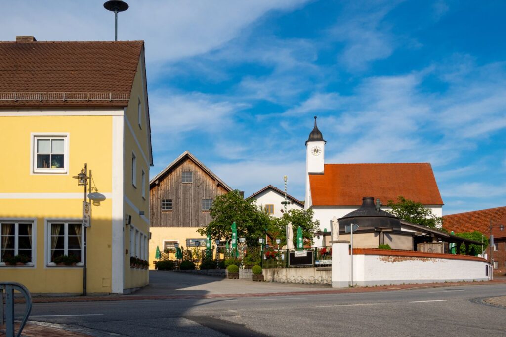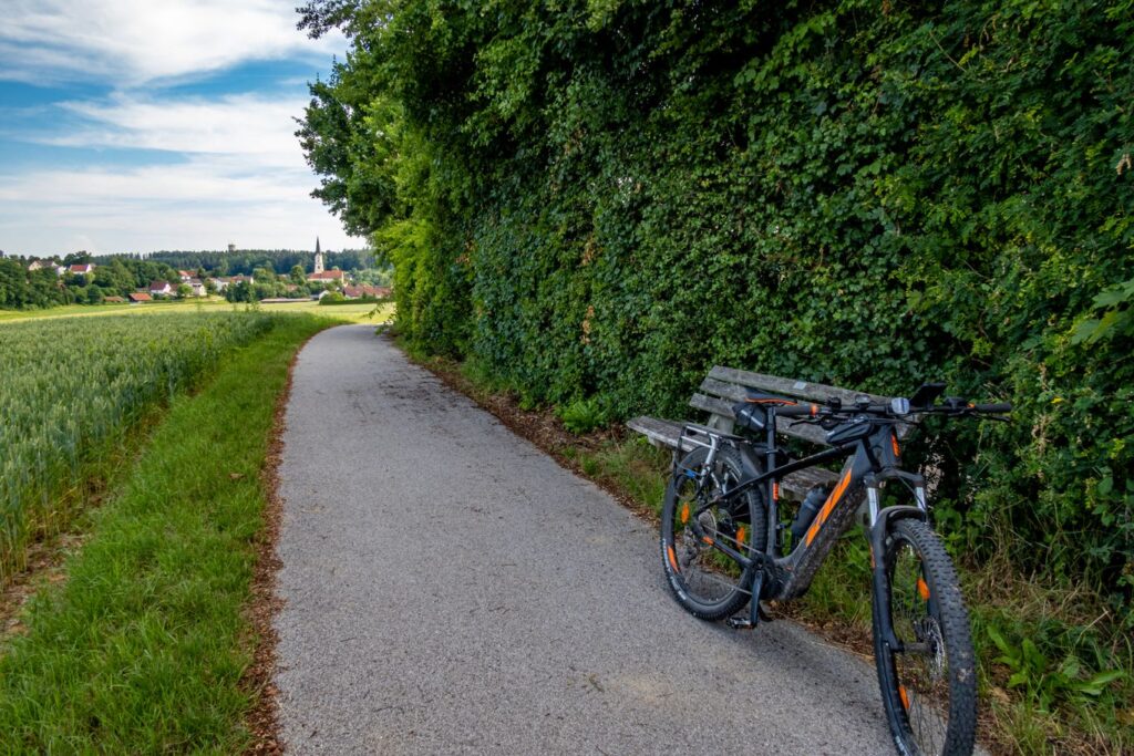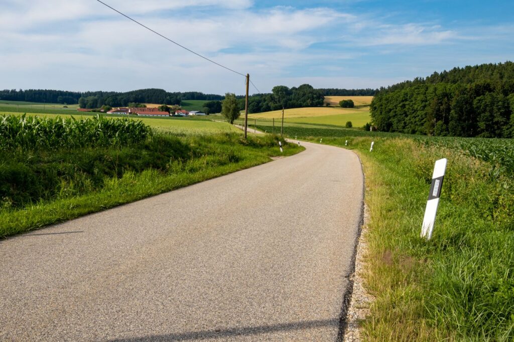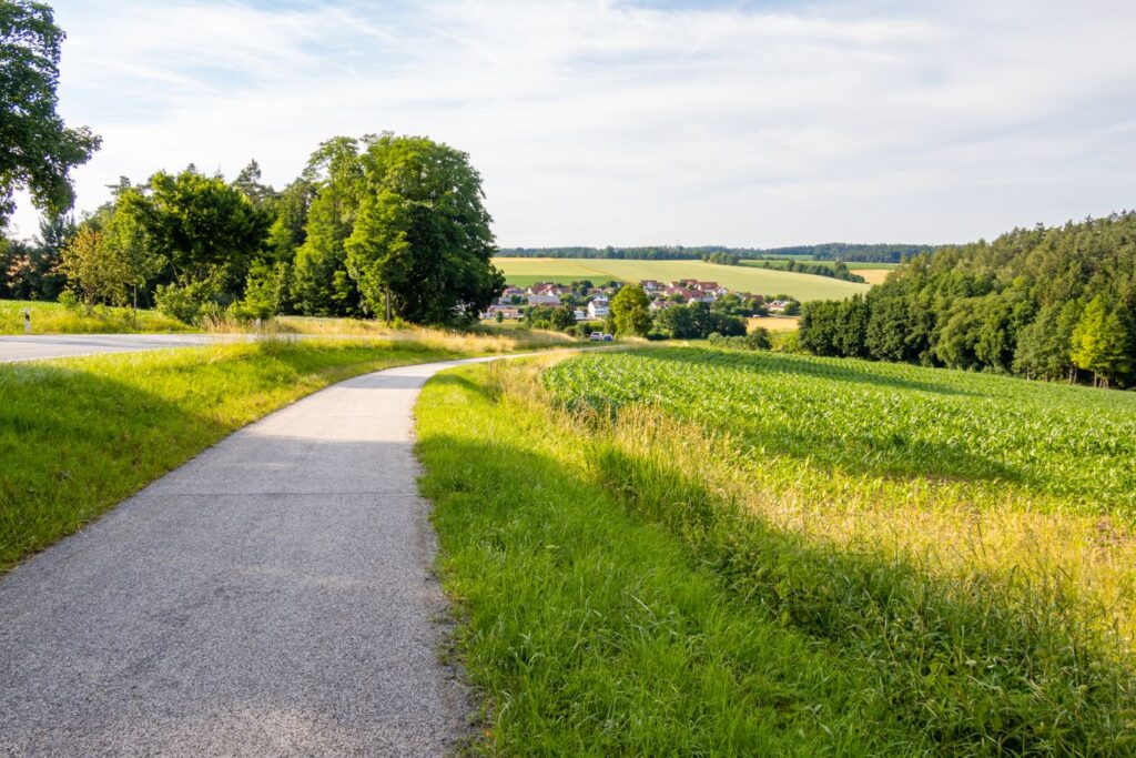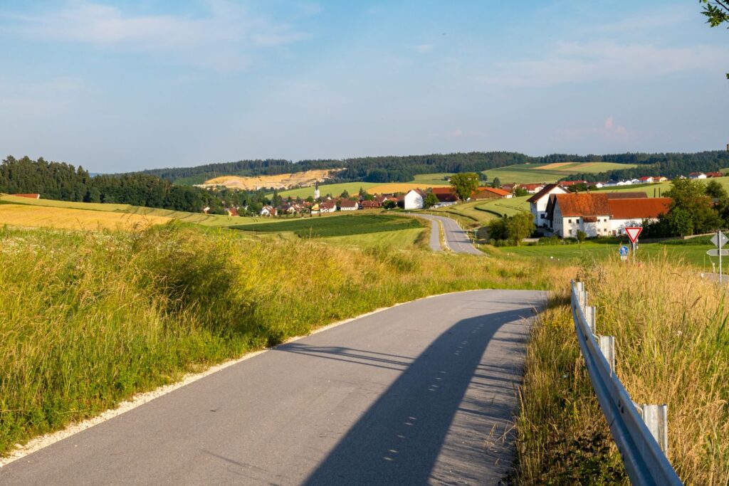 Frisch gestärkt machen wir uns in Furth auf den Weg über den Klosterberg Richtung Weihmichl, um weitere Höhenmeter zu gewinnen. Ein Radweg führt uns Richtung Weihmichl und damit zur nächsten Abfahrt. In Weihmichl biegen wir am Haus der Begegnung mit einem Blick auf das „Roider-Jackl“-Denkmal links ab und treffen wieder auf die B299, welcher wir kurz geradeaus folgen und gleich wieder gerade aus Richtung Edenland folgen. Noch vor den letzten Häusern zweigt etwas nach oben führend der Radweg von der Straße ab. Wir folgen dem Radweg nach Edenland und bleiben durch Edenland hindurch auf der Straße. Nach den letzten Edenlander Häußern geht es rechts Richtung Unterschwendt – ein herrlicher Streckenabschnitt. Wir passieren alle Unterschwendter Höfe und biegen kurz nach dem letzten Hof rechts in einen gepflasterten Weg ein. Es geht wieder mal bergauf. Oben angekommen geht der Weg erst in einen Schotterweg und nach einigen Kurven in einen kurzen Waldabschnitt über. Im Wald treffen wir wieder auf eine geteerte Ortsverbindungsstraße, auf welche wir nach links einbiegen. Wir folgen dieser Straße mit herrlichem Ausblick kurz bis zur Kreuzung Hummelsberg. An der neu erbauten Kapelle biegen wir rechts ab Richtung Bibelsbach. Nach der Abfahrt rechts halten und durch Bibelsbach hindurch. Nach Bibelsbach biegen wir abermals rechts ab und sind nun auf der Zielgeraden Richtung Hohenthann. Zwei letzte Steigungen und eine Abfahrt und wir sind wieder in Hohenthann und kehren abermals gemütlich ein.