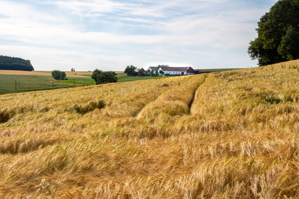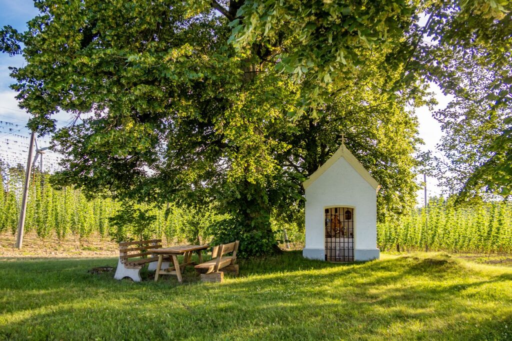 Wir starten bei der Schloßbrauerei Hohenthann entlang der Rottenburger Straße Richtung Rottenburg. Am Ortsausgang startet der Radweg parallel zur Straße, der kurz nach einer kleinen Walddurchfahrt steil und kurvig bergab führt (v.a. mit Kindern langsam fahren!). Unten angekommen überqueren wir die Kreuzung gerade aus und fahren auf der Hauptstraße durch Türkenfeld. Auch hier beginnt am Ortsausgang wieder ein Radweg, welchem wir über eine längere Distanz, bald stetig bergauf führend, folgen. Oben angekommen überqueren wir kurz nach dem Hopfenfeld die Hauptstraße und folgen – wieder auf einem Radweg parallel zur Straße – der Beschilderung Richtung Schmatzhausen / Weihmichl. Erst leicht bergab, dann leicht bergauf, bis wir schließlich Schmatzhausen erblicken und am Dorf angelangen. Achtung: der Radweg endet dort recht abrupt! Bitte hier sehr vorsichtig fahren, sonst droht der Graben oder eine Kollision mit einem Auto! Wir fahren also auf die Straße – eine rasante Abfahrt bis ins Dorfzentrum. Wir bleiben auf der „Landshuter Straße“ bis kurz nach dem Ortsausgang uns ein Schild „Egg“ die Abzweigung nach rechts zeigt. Auf einer idyllisch gelegenen Ortsverbindungsstraße geht es optisch ansprechend aber kräftezehrend langsam aber stetig bergauf nach Egg. Auch wenn unser Weg an der Kapelle kurz nach Egg eigentlich nach links führen würde, fahren wir noch ein paar hundert Meter weiter und machen eine Rast auf den Bänken mit Tisch bei der Jakobuskapelle – wohl einer der schönsten Rastgelegenheiten im Holledauer Tor! Gestärkt geht es das kleine Wegstück wieder retour und diesmal noch vor Egg biegen wir rechts ab Richtung Stollnried. Immer wieder bergab und bergauf führt uns die schöne Ortsverbindungsstraße nach Stollnried. Am Straßenende biegen wir rechts ab und durchqueren Stollnried, bleiben auf dieser Straße, wo schon die nächste Steigung auf uns wartet. [MTBler können von der Jakobuskapelle bei Egg auch einen stetig bergabführenden Feldweg bis nach Unterneuhausen als Alternative wählen]. Nach dem länglichen Aufstieg einen Schluck gegen den Durst am neuen Wegkreuz und dann die Abfahrt nach Unterneuhausen genießen. Auch hier gilt es wieder vorsichtig zu fahren! In Unterneuhausen erreichen wir die B299, auf welche wir nach links abbiegen und dann bald wieder nach rechts Richtung Furth verlassen. Ein Radweg – natürlich wieder erst bergauf und dann bergab – bringt uns sicher nach Furth. Jetzt heißt es eine passende Einkehr wählen und eine größere Pause genießen. Der Weg auf unserer Karte führt diesmal zum Further Klosterstüberl. Weitere Einkehrmöglichkeiten sind unten verlinkt.