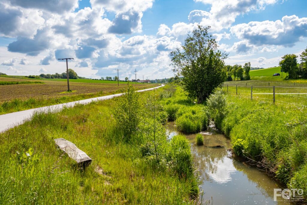Nun folgen wir dem Radweg bis hinunter bis nach Obermünchen. In Obermünchen kurz auf die LA 38 um dann gleich wieder nach links auf den Radweg Richtung Furth abzubiegen. Wir folgen einfach dem schönen Radweg stets entlang am Further Bach vorbei an Geberskirchen und am Warzelberger Hof (ein Eis geht immer!).