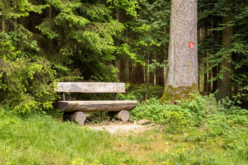 Wir starten am Further Waldkindergarten vorbei gleich bergab Richtung Bucher Graben und sehen bereits hier die Beschilderung des Wanderwegs Nr. 1 (weiße 1 auf rotem Grund) welcher wir während unserer ganzen Tour stets folgen werden. Aufgrund der guten Beschilderung durch den Bayerischen Wald-Verein, Sektion Landshut e. V., kann hier auf eine detaillierte Wegbeschreibung mit allen Abzweigungen verzichtet werden. Weiter unten findet man auch eine Druckversion der Routenbeschreibung und eine Karte!